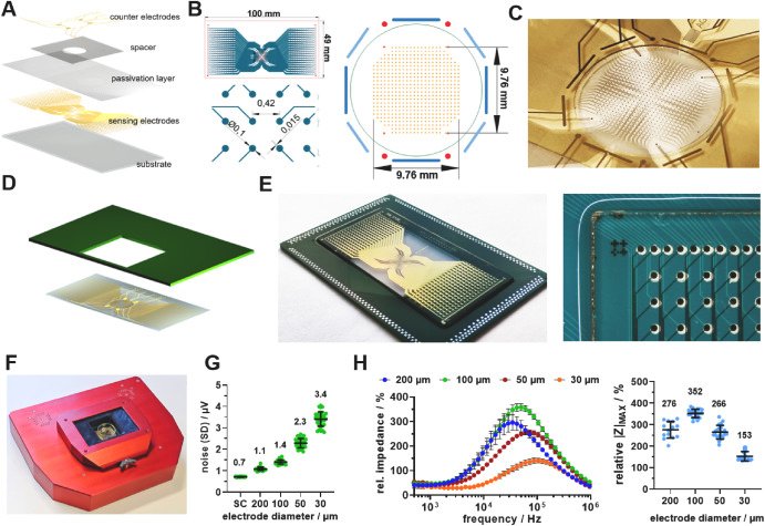 In recent decades, significant progress has been made in the treatment of heart diseases, particularly in the field of personalized medicine. Despite the development of genetic tests, phenotyping and risk stratification are performed based on clinical findings and invasive in vivo techniques, such as stimulation conduction mapping techniques and programmed ventricular pacing. Consequently, label-free non-invasive in vitro functional analysis systems are urgently needed for more accurate and effective in vitro risk stratification, model-based therapy planning, and clinical safety profile evaluation of drugs. To overcome these limitations, a novel multilayer high-density microelectrode array (HD-MEA), with an optimized configuration of 512 sensing and 4 pacing electrodes on a sensor area of 100 mm2, was developed for the bioelectronic detection of re-entry arrhythmia patterns. Together with a co-developed front-end, we monitored label-free and in parallel cardiac electrophysiology based on field potential monitoring and mechanical contraction using impedance spectroscopy at the same microelectrode. In proof of principle experiments, human induced pluripotent stem cell (hiPS)-derived cardiomyocytes were cultured on HD-MEAs and used to demonstrate the sensitive quantification of contraction strength modulation by cardioactive drugs such as blebbistatin (IC50 = 4.2 μM), omecamtiv and levosimendan. Strikingly, arrhythmia-typical rotor patterns (re-entry) can be induced by optimized electrical stimulation sequences and detected with high spatial resolution. Therefore, we provide a novel cardiac re-entry analysis system as a promising reference point for diagnostic approaches based on in vitro assays using patient-specific hiPS-derived cardiomyocytes.